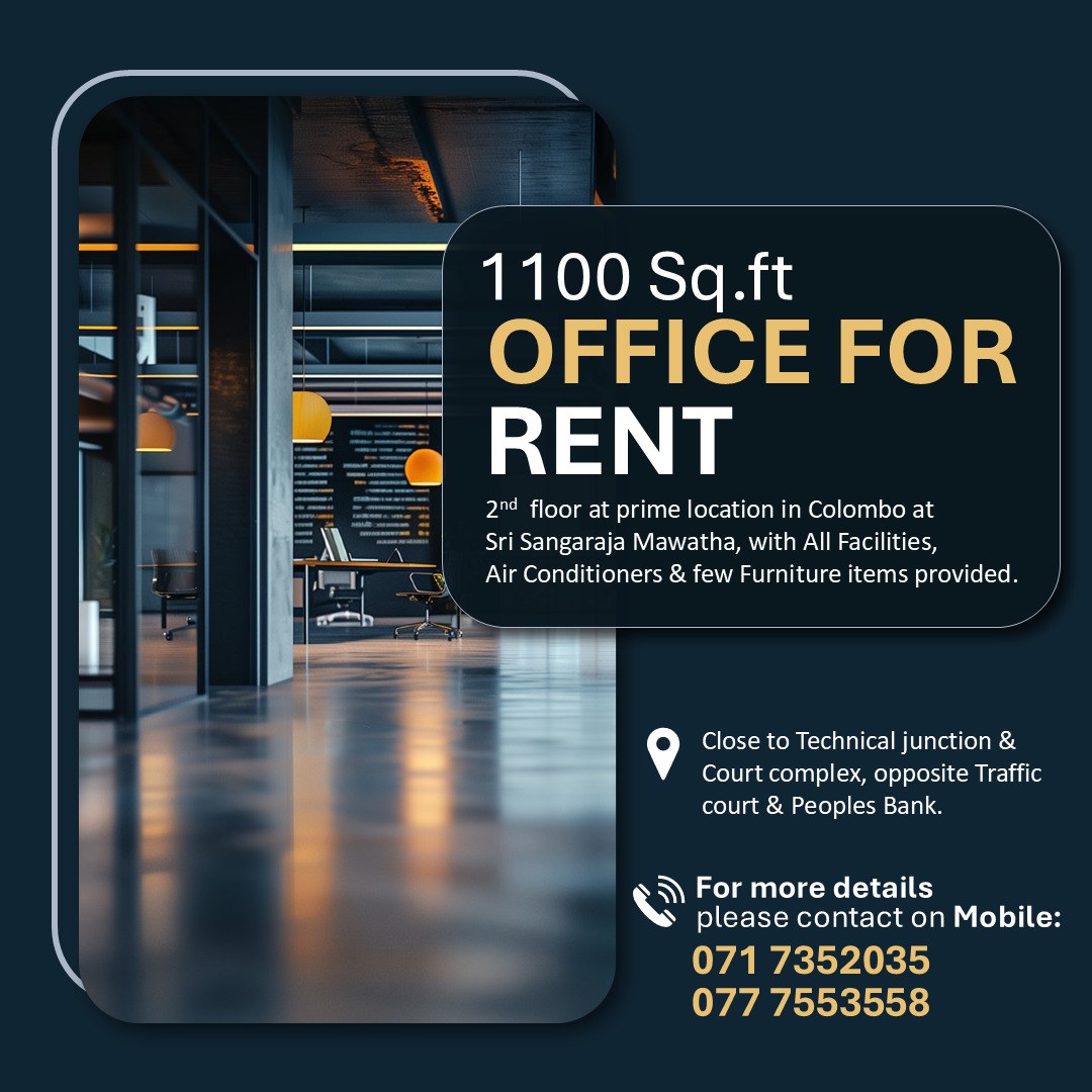 • > 2nd floor at prime location in Colombo at Sri Sangaraja Mawatha