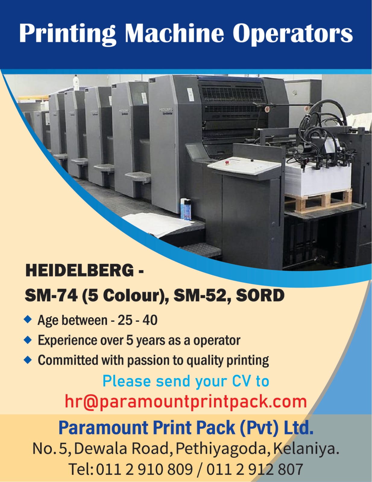 ++ Please send your CV to hr@paramountprintpack.com