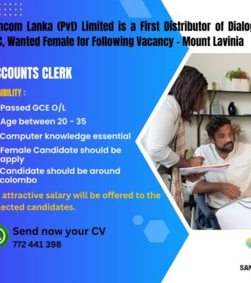 Sancom Lanka (Pvt) Limited is a First Distributor of Dialog Axiata PLC, Wanted Female for Following Vacancy – Mount...